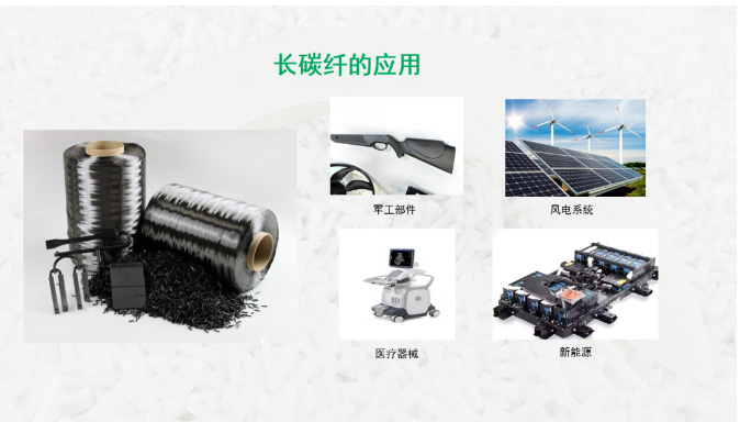 长碳纤维的硬度是钢材的5到7倍,但重量只有钢材的五分之一,而且耐高温,有优良的物理和化学性能,它具有极好的抗拉强度。长碳纤维不仅可以用在航空和航天设备上,还能用在军工部件、风电系统、医疗器械、新能源等领域。