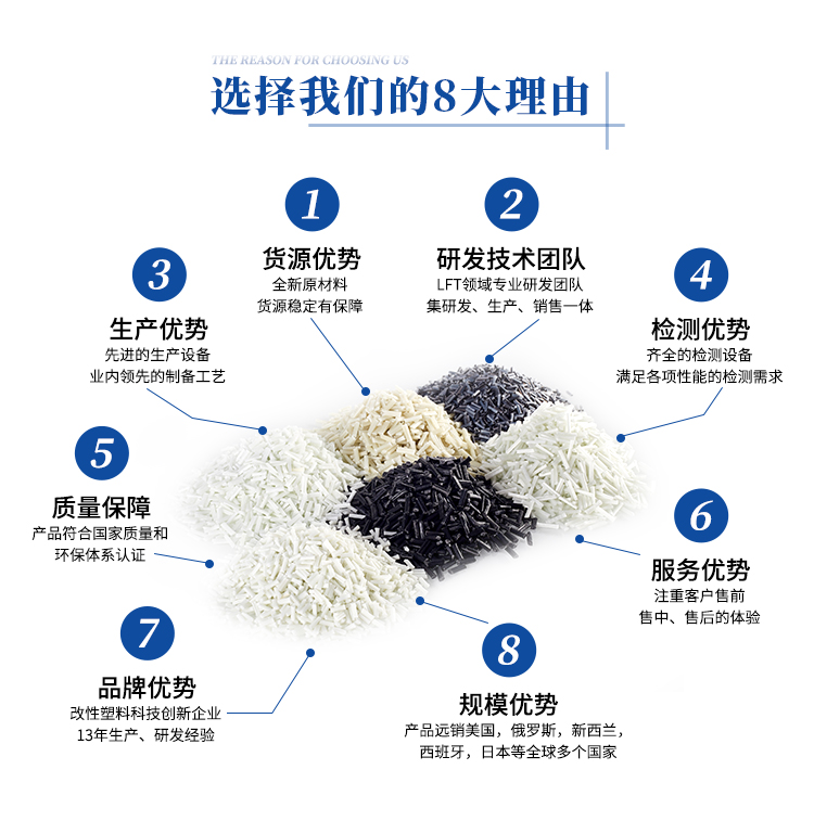 产品名称:LFT PP  长玻纤PP 增强 高刚性 汽车部件用料 现货   产品型号:PP-LGF 加工级别:注塑级   颜色:根据需要   优势:   1.高韧性   2.低翘曲   3.耐疲劳、耐高温、耐老化、注塑级   包装:25kg /袋   产地:长纤(厦门)新材料科技有限公司