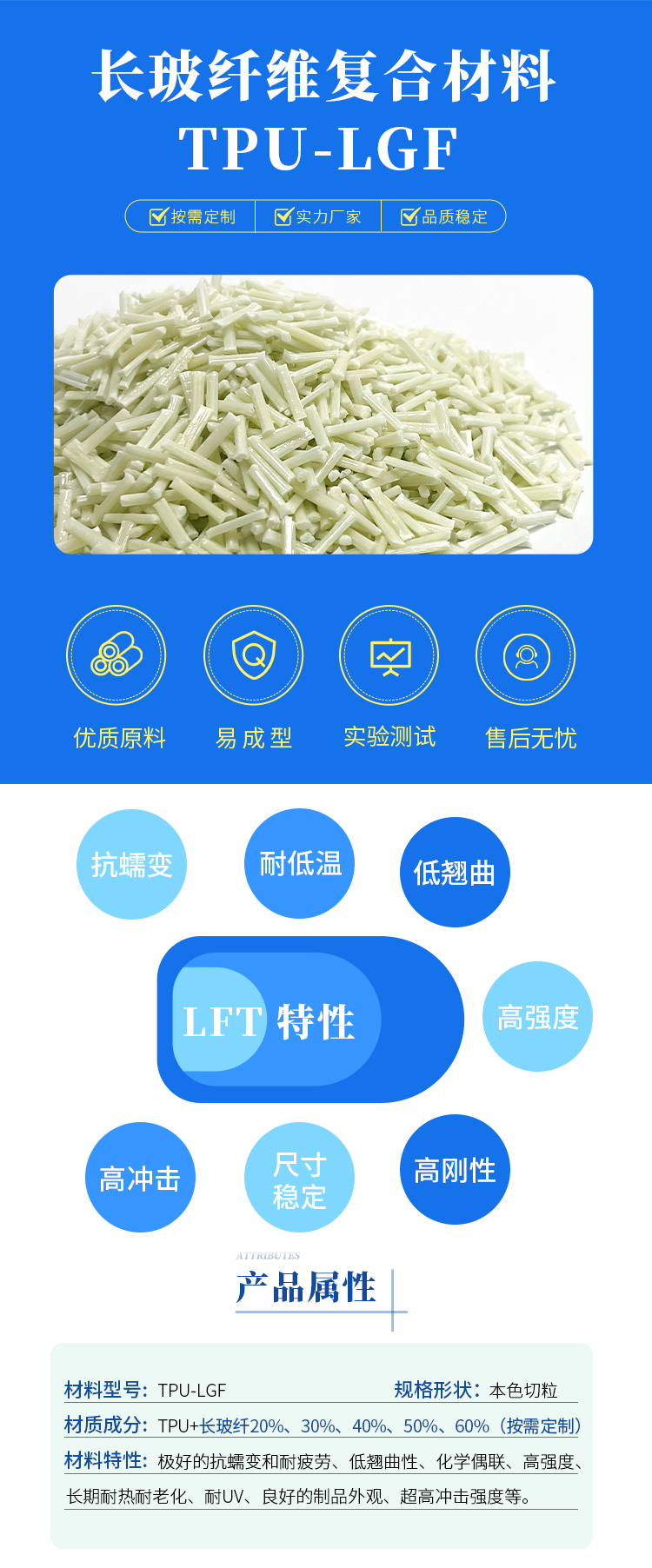 主题 : LFT-G长玻纤TPU改性材料聚氨酯树脂颗粒加纤TPU本色高刚性高冲击